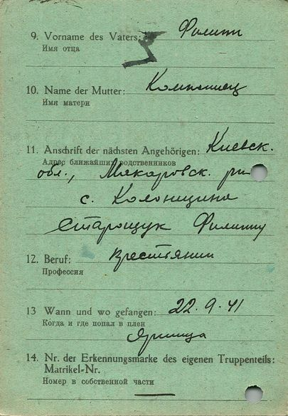 Военнопленные, трофейные карточки. Киевская обл.