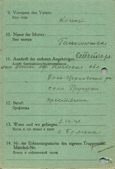Военнопленные, трофейные карточки. Киевская обл.