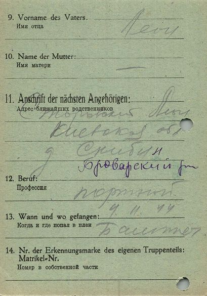Военнопленные, трофейные карточки. Киевская обл.
