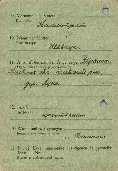 Военнопленные, трофейные карточки. Киевская обл.