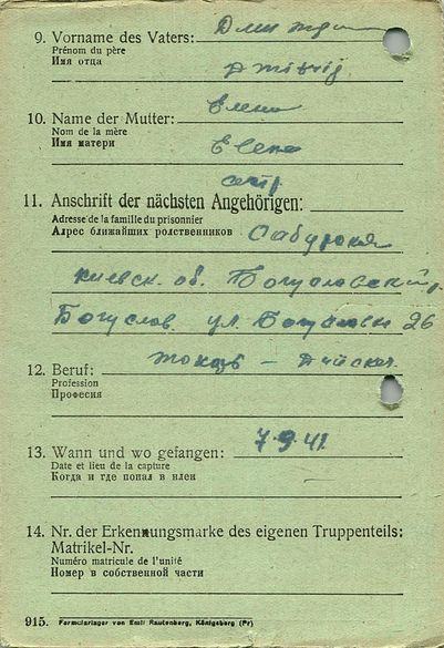 Военнопленные, трофейные карточки. Киевская обл.