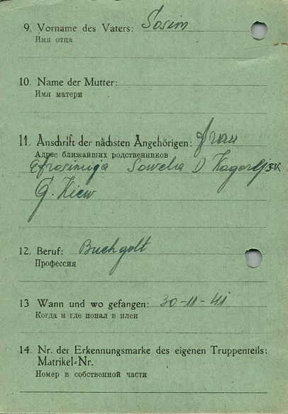 Военнопленные, трофейные карточки. Киевская обл.