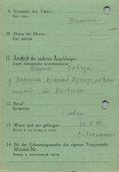 Военнопленные, трофейные карточки. Киевская обл.