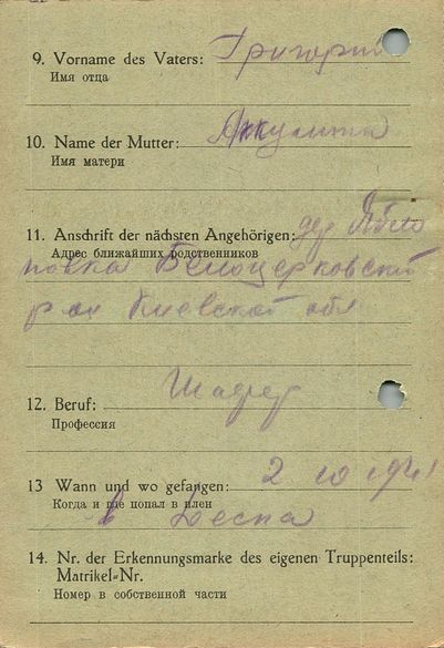 Военнопленные, трофейные карточки. Киевская обл.