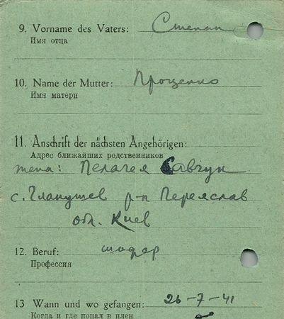 Военнопленные, трофейные карточки. Киевская обл.