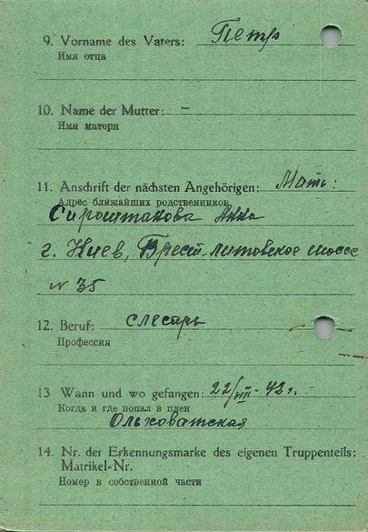 Военнопленные, трофейные карточки. Киевская обл.