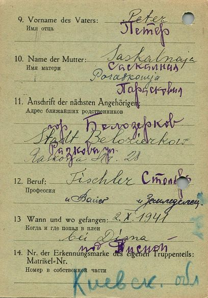 Военнопленные, трофейные карточки. Киевская обл.