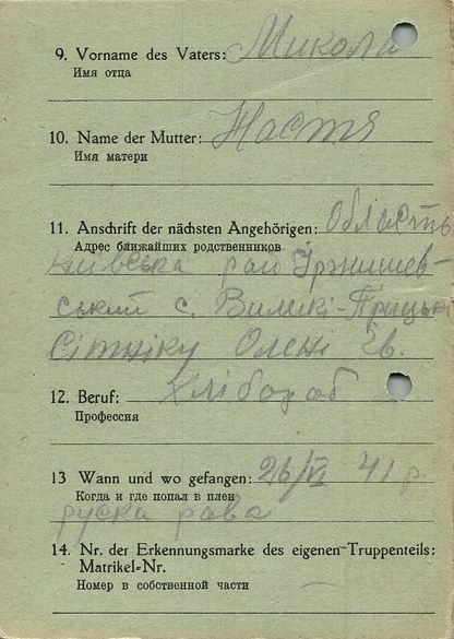 Военнопленные, трофейные карточки. Киевская обл.