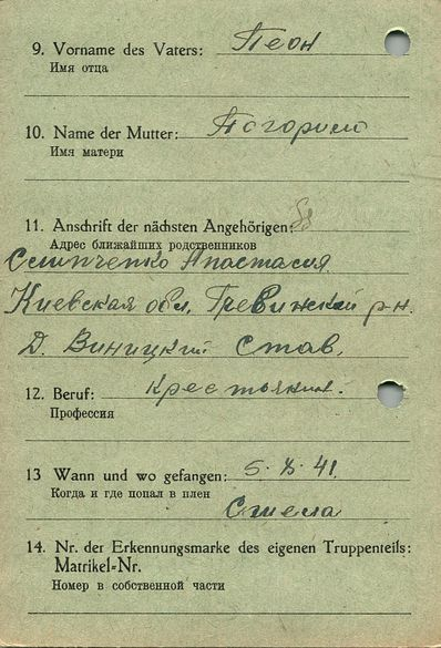 Военнопленные, трофейные карточки. Киевская обл.