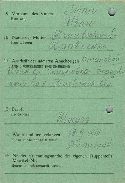 Военнопленные, трофейные карточки. Киевская обл.