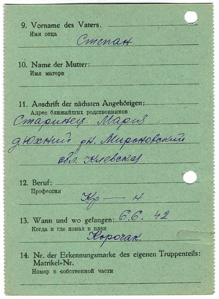 Военнопленные, трофейные карточки. Киевская обл.