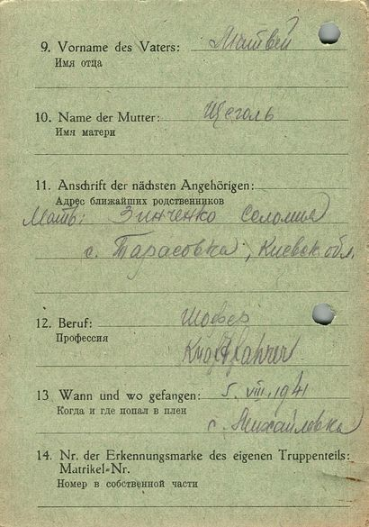 Военнопленные, трофейные карточки. Киевская обл.