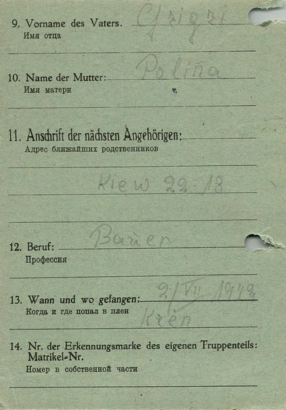 Военнопленные, трофейные карточки. Киевская обл.