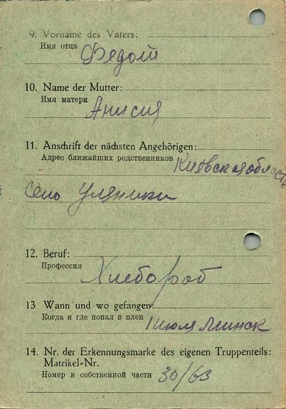 Военнопленные, трофейные карточки. Киевская обл.