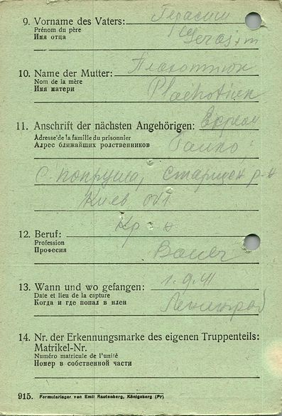 Военнопленные, трофейные карточки. Киевская обл.