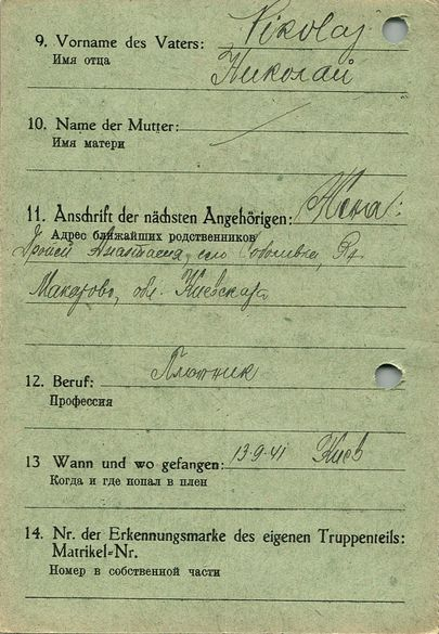 Военнопленные, трофейные карточки. Киевская обл.