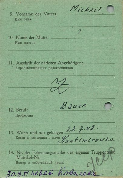Военнопленные, трофейные карточки. Киевская обл.