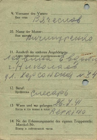 Военнопленные, трофейные карточки. Киевская обл.