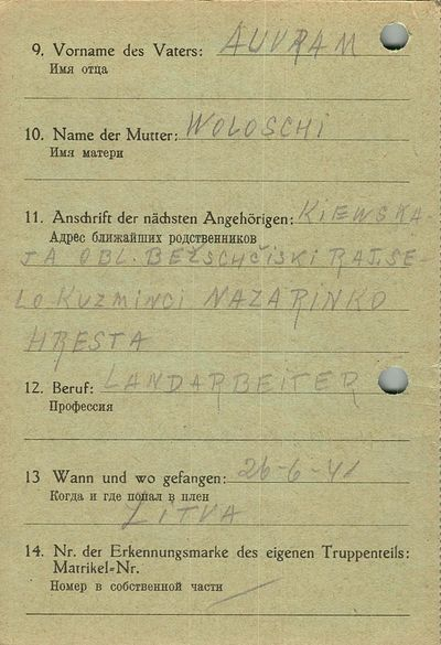 Военнопленные, трофейные карточки. Киевская обл.