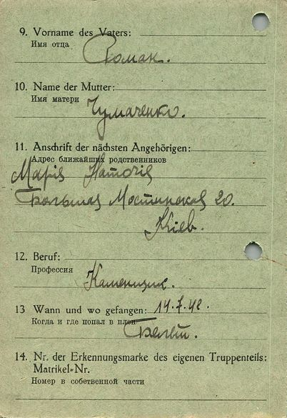 Военнопленные, трофейные карточки. Киевская обл.