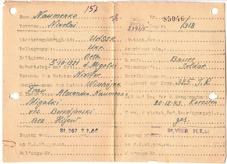 Военнопленные, трофейные карточки. Киевская обл.