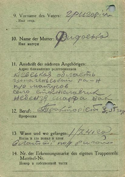 Военнопленные, трофейные карточки. Киевская обл.