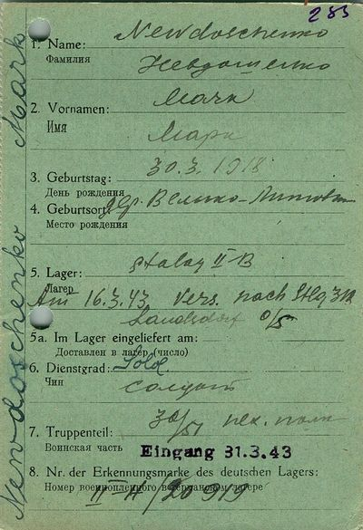 Военнопленные, трофейные карточки. Киевская обл.