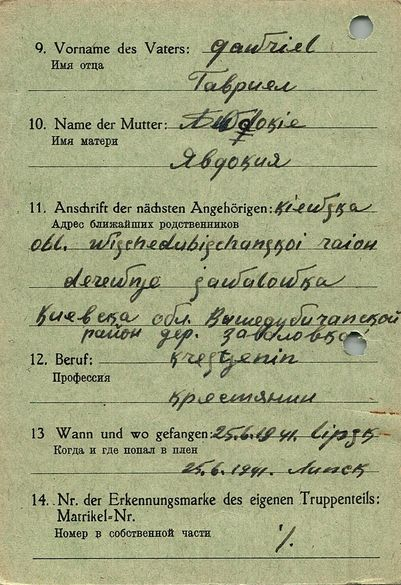Военнопленные, трофейные карточки. Киевская обл.