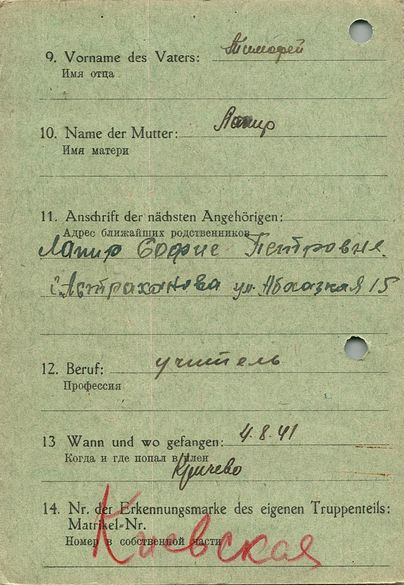 Военнопленные, трофейные карточки. Киевская обл.