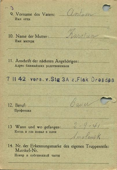 Военнопленные, трофейные карточки. Киевская обл.