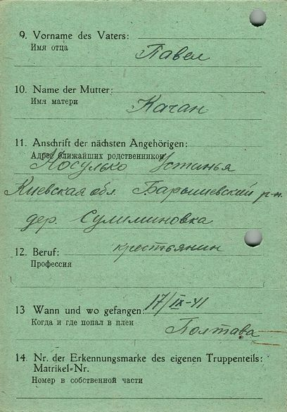 Военнопленные, трофейные карточки. Киевская обл.