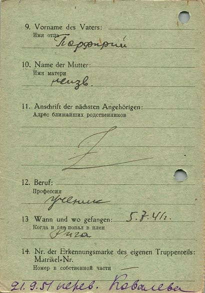 Военнопленные, трофейные карточки. Киевская обл.