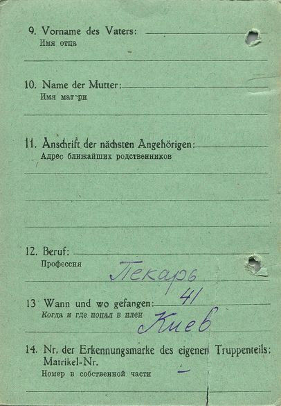 Военнопленные, трофейные карточки. Киевская обл.