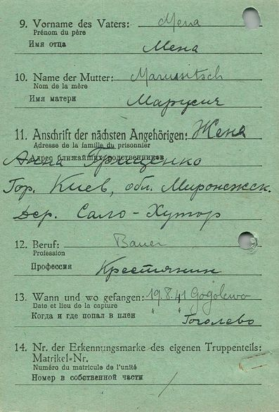 Военнопленные, трофейные карточки. Киевская обл.