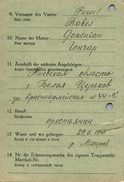 Военнопленные, трофейные карточки. Киевская обл.
