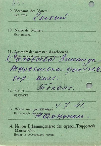 Военнопленные, трофейные карточки. Киевская обл.