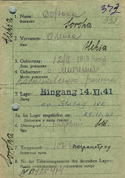 Военнопленные, трофейные карточки. Киевская обл.