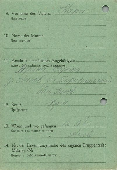 Военнопленные, трофейные карточки. Киевская обл.