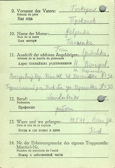Военнопленные, трофейные карточки. Киевская обл.