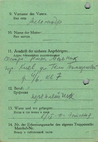 Военнопленные, трофейные карточки. Киевская обл.