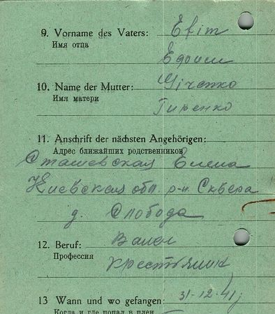 Военнопленные, трофейные карточки. Киевская обл.