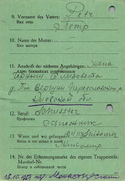 Военнопленные, трофейные карточки. Киевская обл.