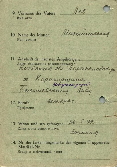 Военнопленные, трофейные карточки. Киевская обл.