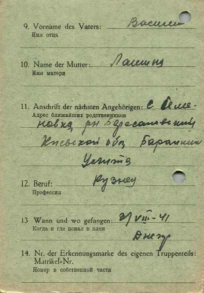 Военнопленные, трофейные карточки. Киевская обл.