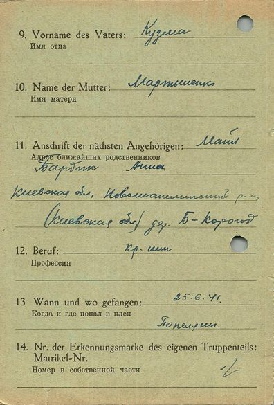 Военнопленные, трофейные карточки. Киевская обл.