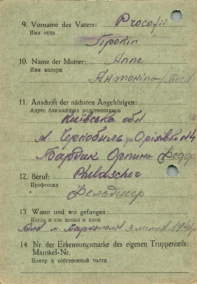 Военнопленные, трофейные карточки. Киевская обл.