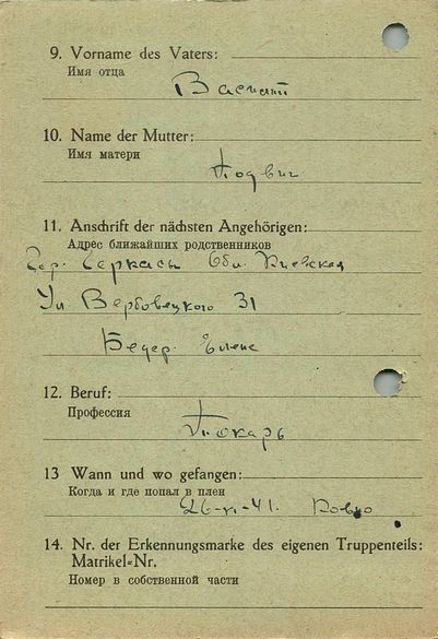Военнопленные, трофейные карточки. Киевская обл.