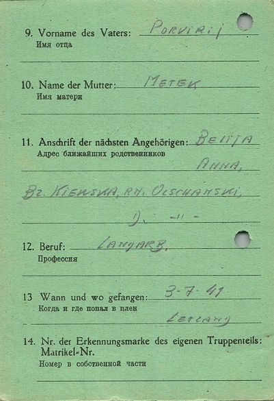 Военнопленные, трофейные карточки. Киевская обл.