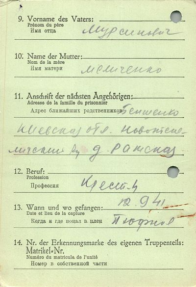 Военнопленные, трофейные карточки. Киевская обл.