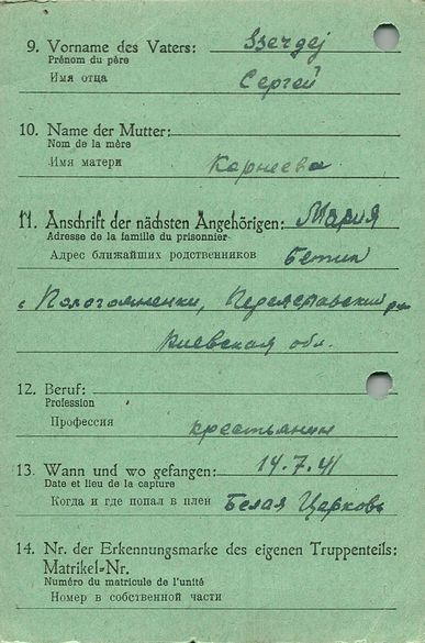 Военнопленные, трофейные карточки. Киевская обл.
